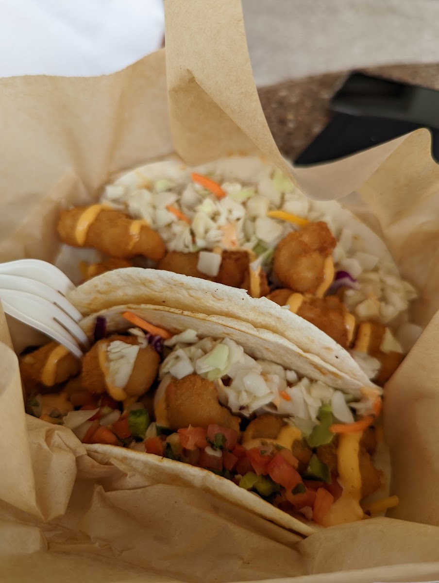 Food is pretty darn good for alittle grill. The ladies are rock stars and super nice. Chicken tacos were yummy. Wish I could had fries too but they were out of the fry oil sadly. Love the location.